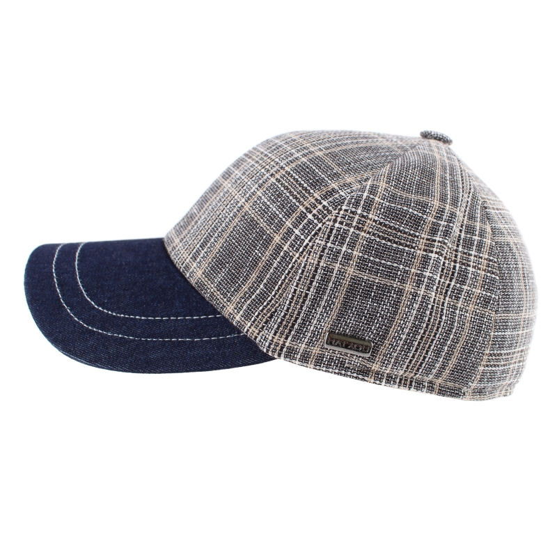 Summer men's baseball cap made of light linen-cotton fabric and fine cotton lining.