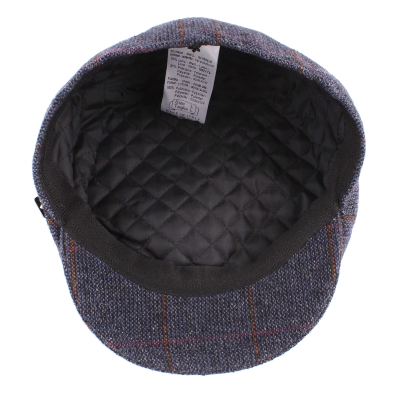 Men's wool cap with a hard brim and a six-piece dome in dark gray check.