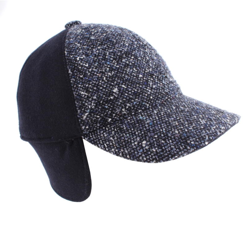 Men's woolen baseball cap in melange and navy color combination.