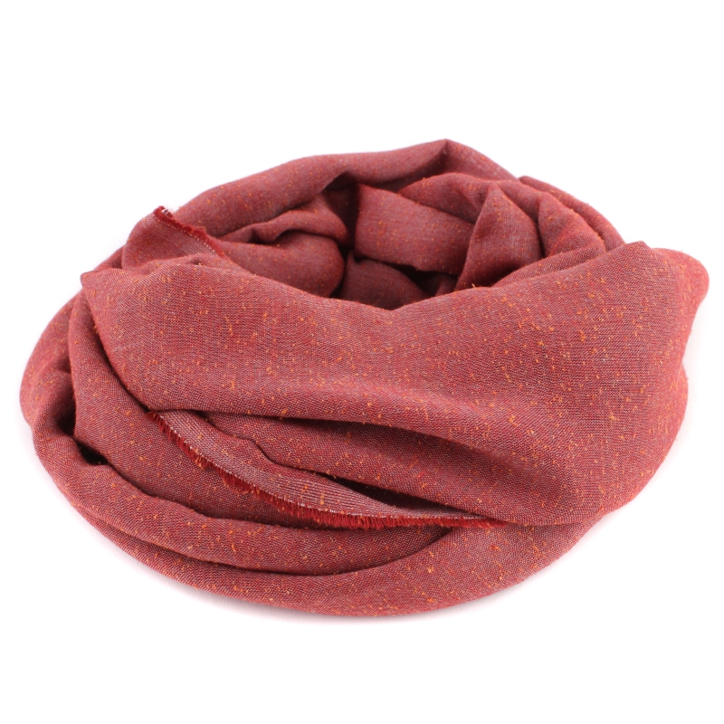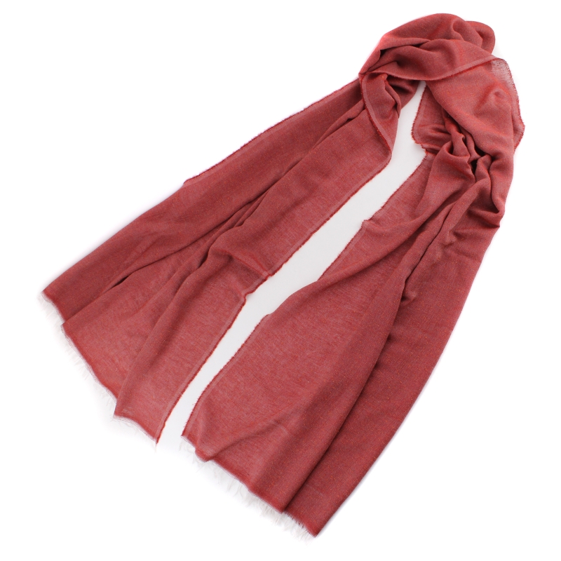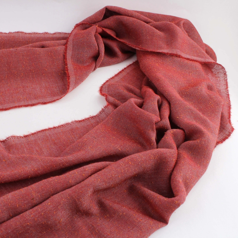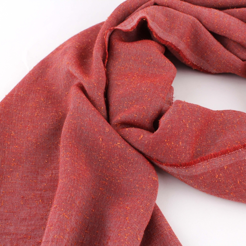 Elegant Fine Scarf in Brick Melange, Interwoven with Delicate Orange Threads