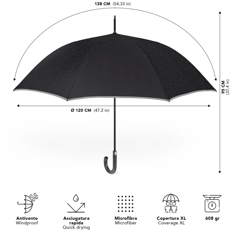 A stylish and reliable accessory for rainy days – this long men's umbrella from the top-tier Perletti Technology line combines modern design, durable materials, and smart details.