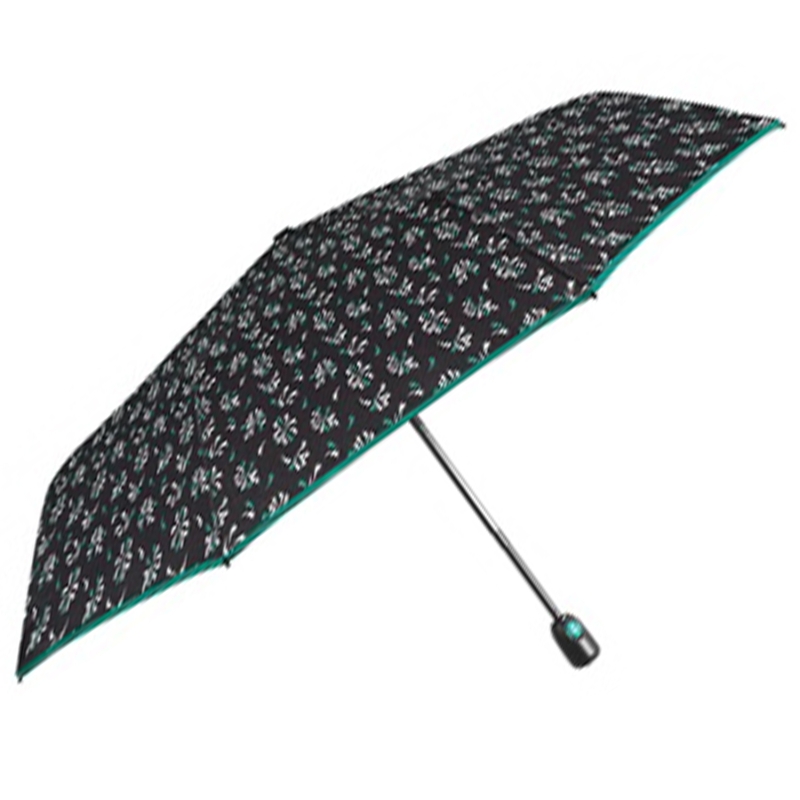 Ladies' Foldable Automatic Open-Close Umbrella Perletti Time 26424, Black with Green Trim