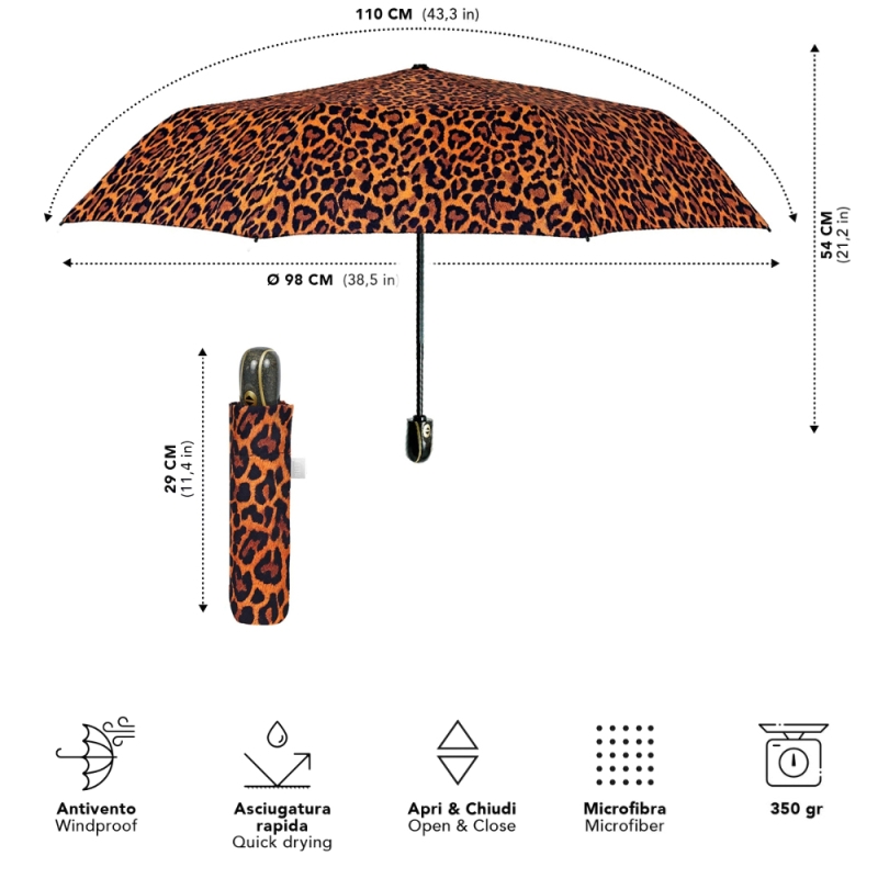 Ladies' Foldable Automatic Open-Close Umbrella Perletti Time 26444, Orange/Leopard