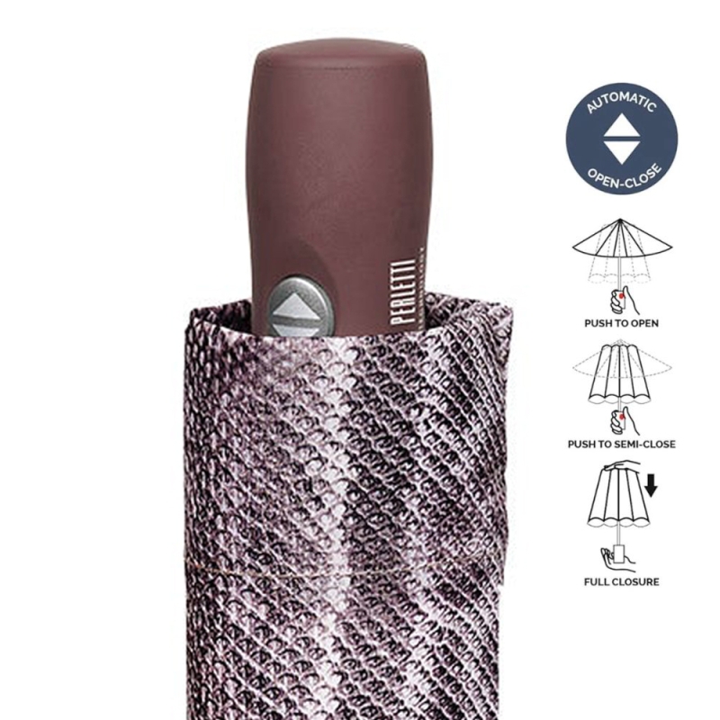 Ladies' Automatic Open-Close Umbrella Perletti Technology 21813, Python/Beige