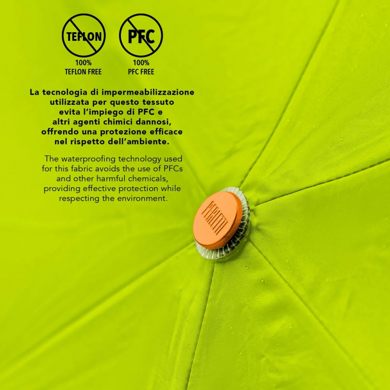 Flexible and ultra-light windproof structure with fiberglass ribs. PFCFREE microfiber fabric with quick-drying and water-repellent properties.