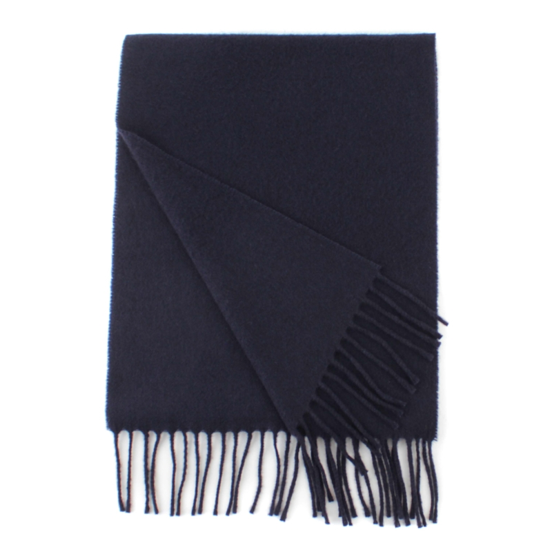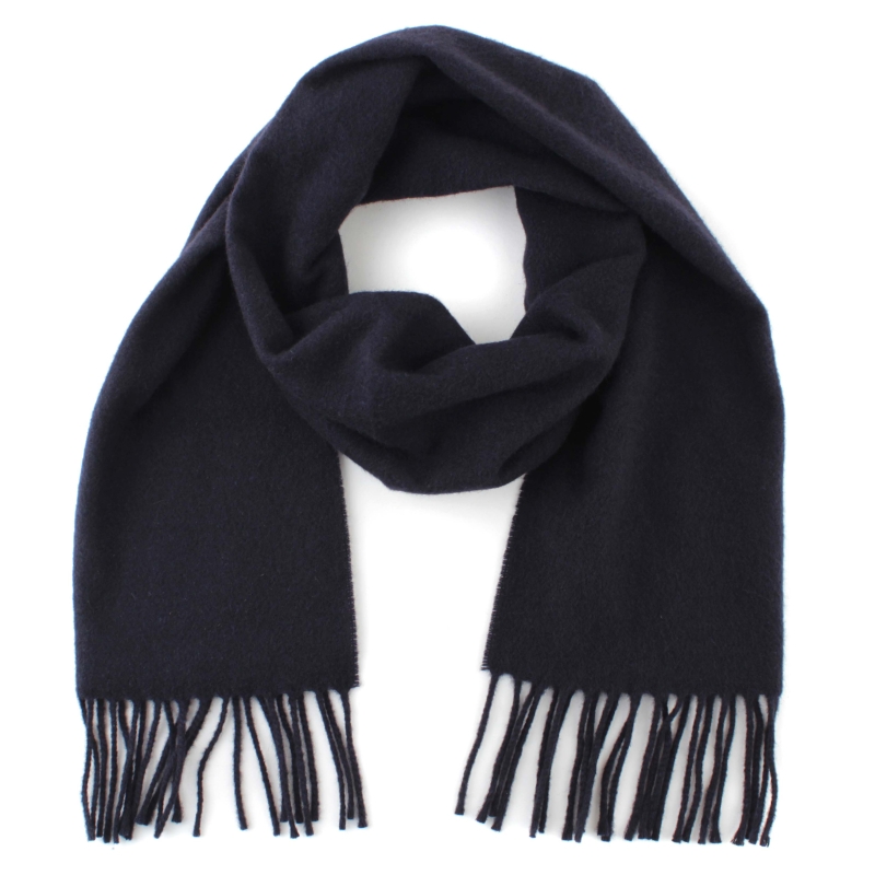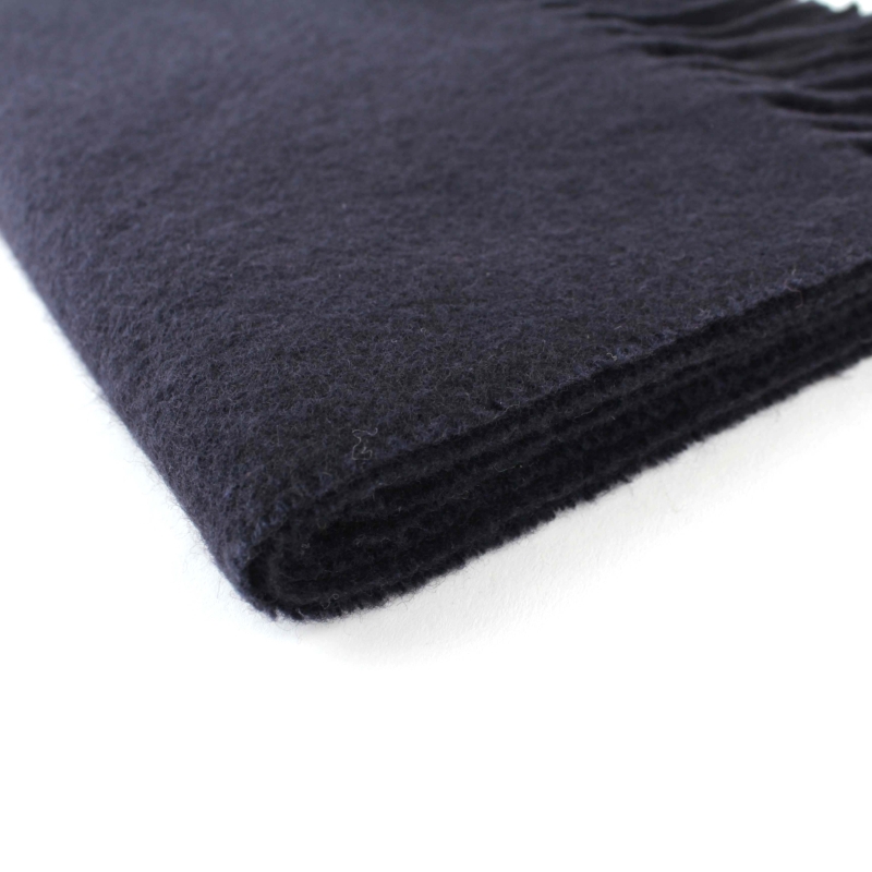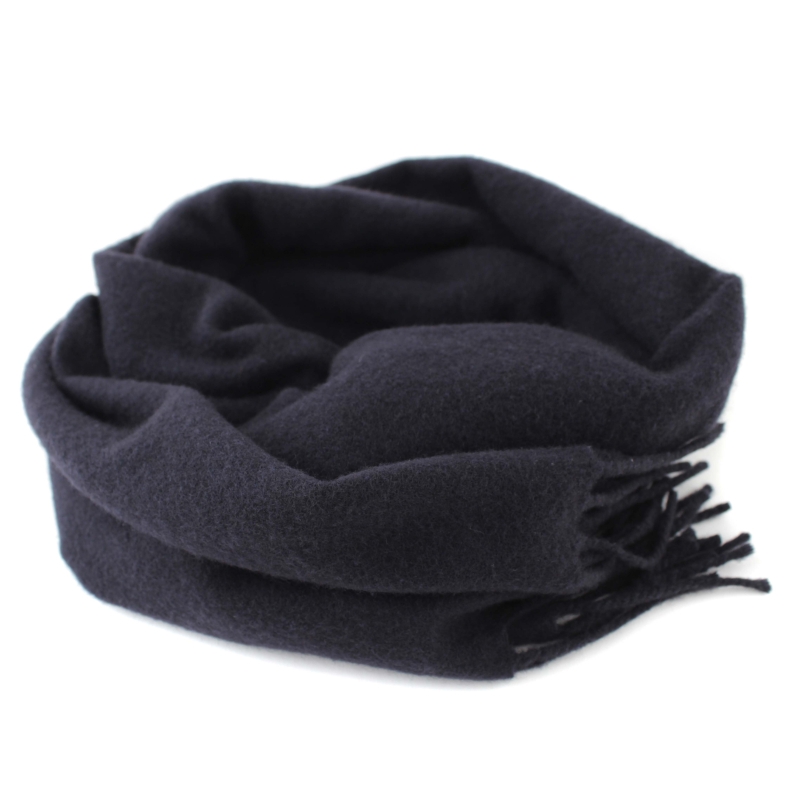 Single-color warm scarf made of carded wool fabric in dark blue.