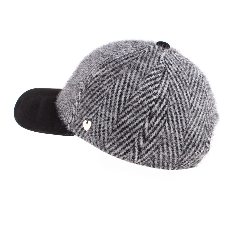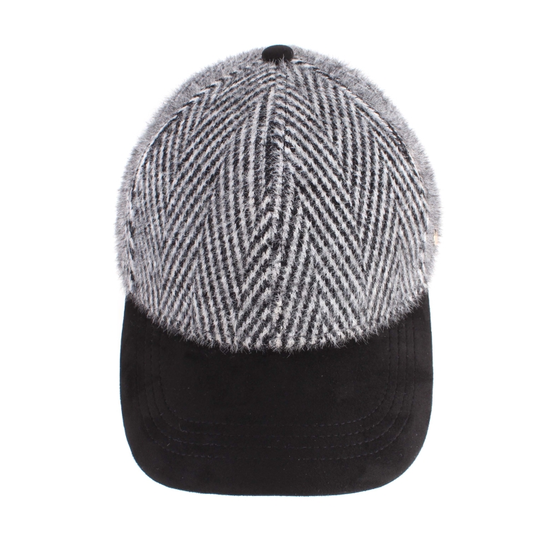 Ladies' baseball cap made of soft and pleasant fluffy fabric in black and white.