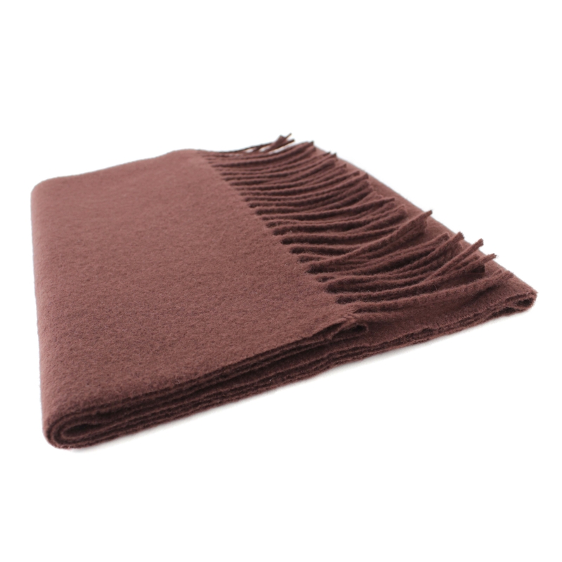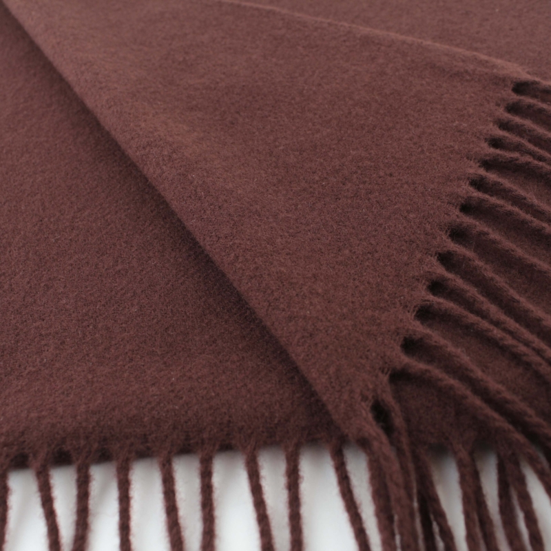 Solid warm scarf made of carded wool fabric in a coffee shade.