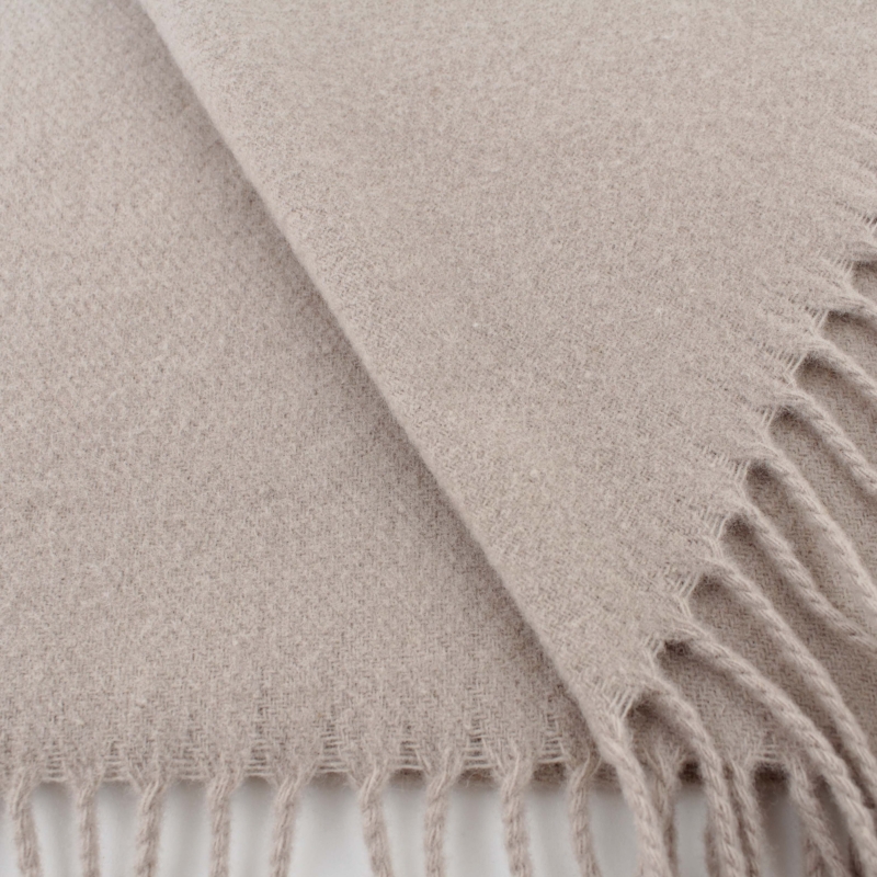 Solid warm scarf made of carded wool fabric in a coffee shade.