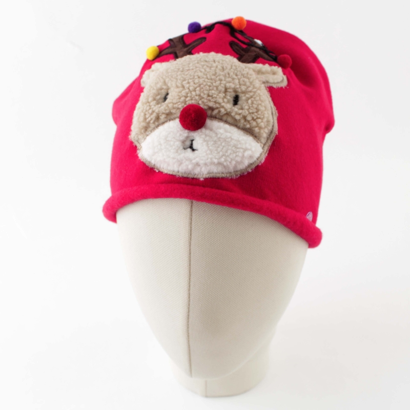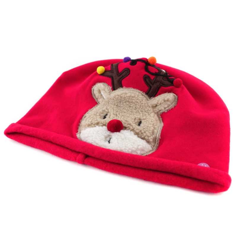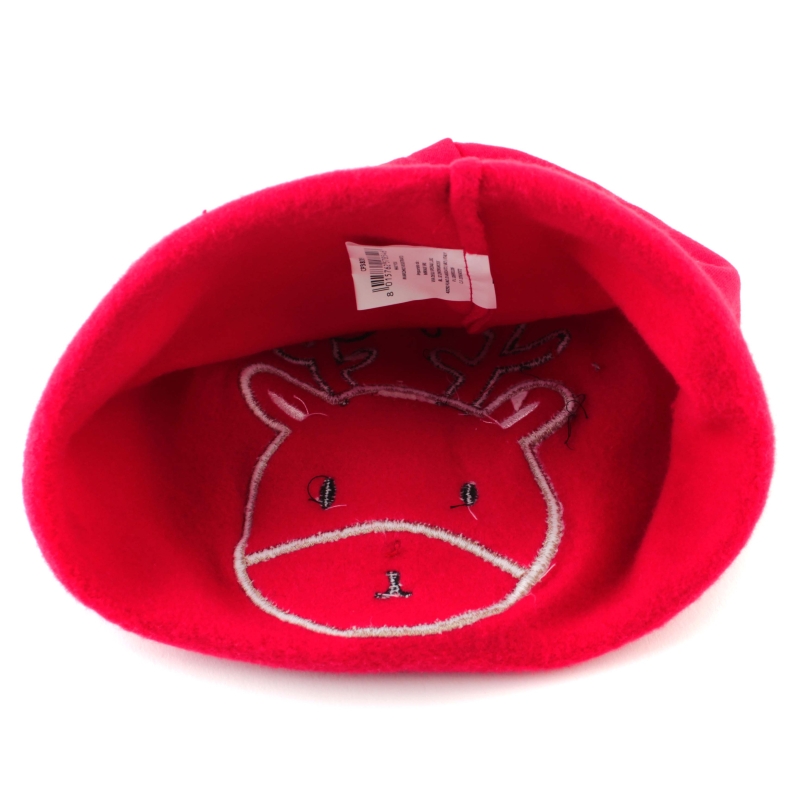 Red cotton hat for children with a deer appliqué.