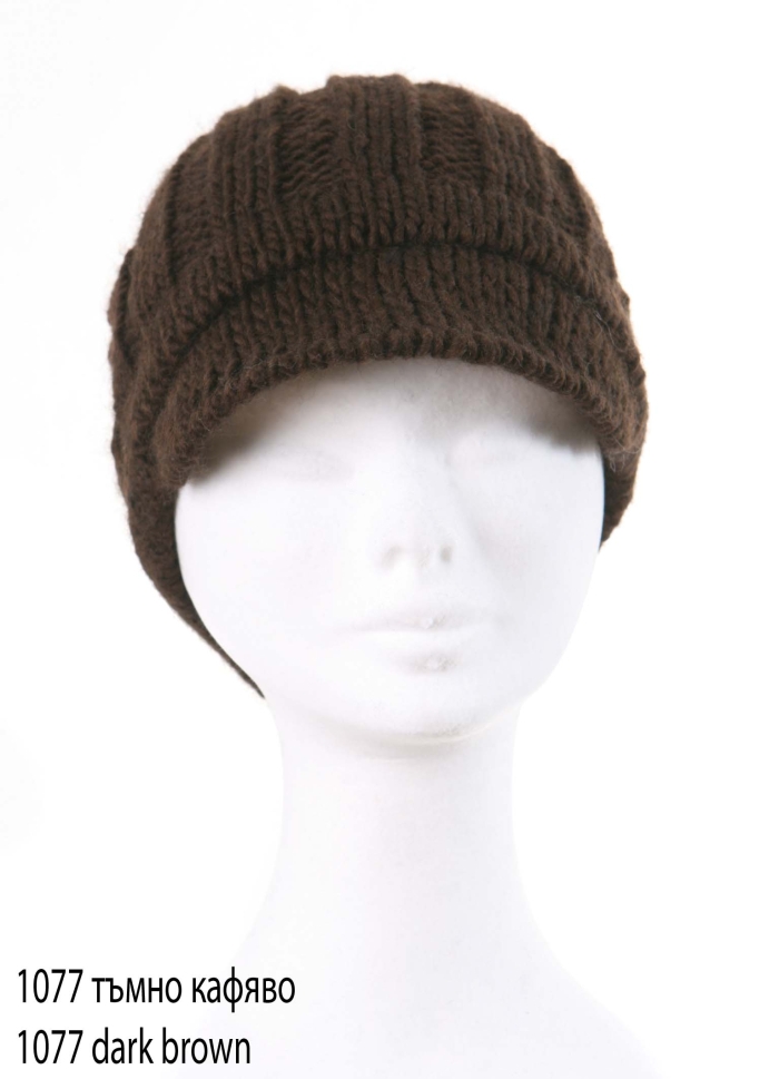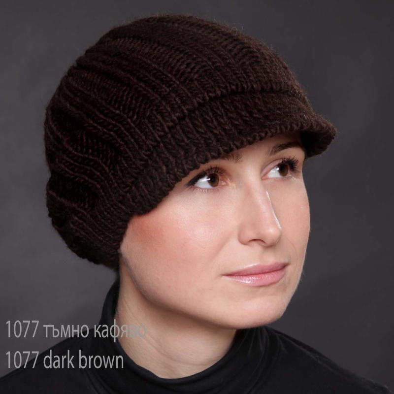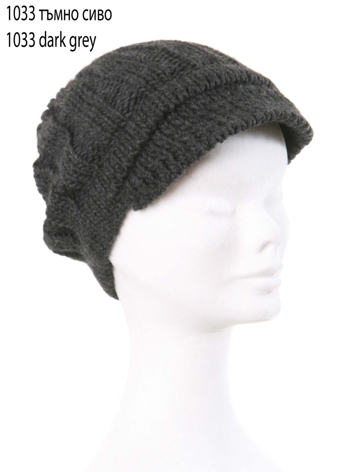 Unisex knitted hat with a visor, made of 70% acrylic and 30% wool.