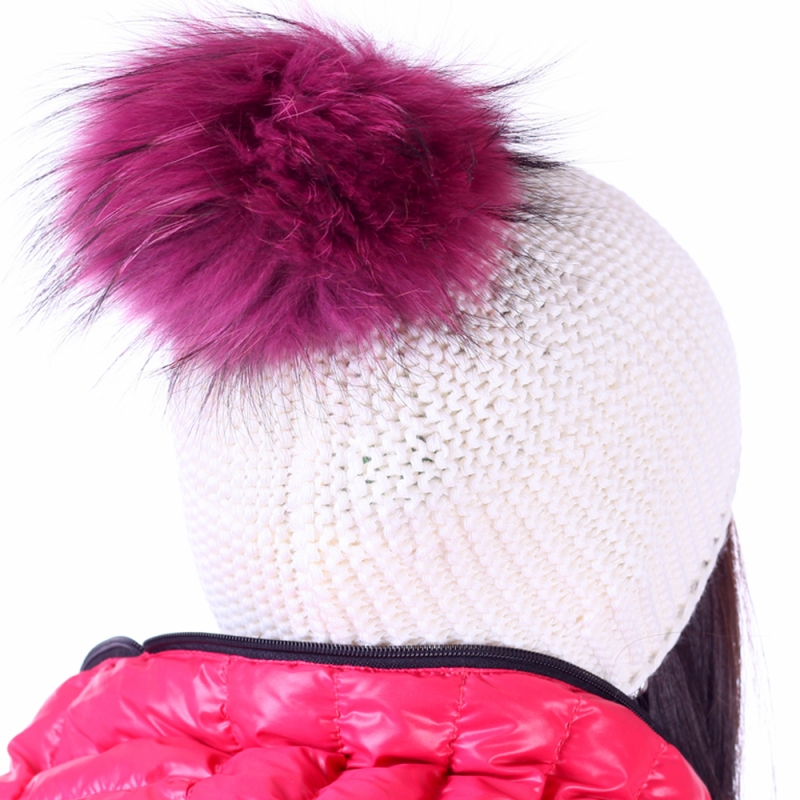 Warm knitted hat made of 50% wool and 50% acrylic. The pompon is made of real leather.