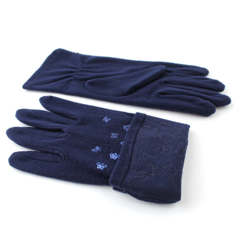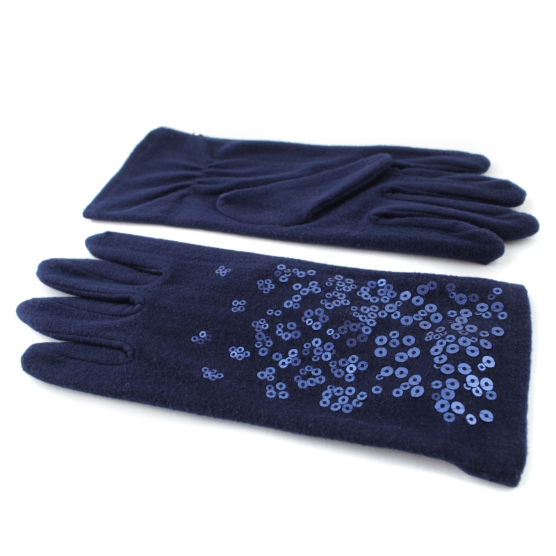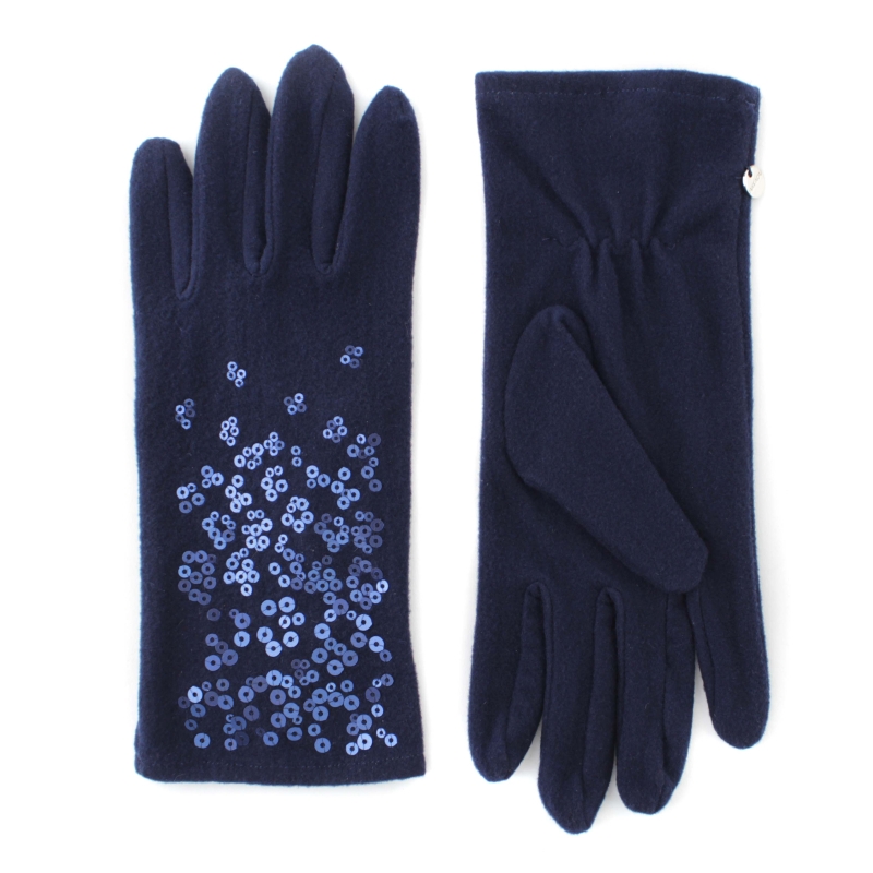 Ladies' navy microfiber gloves with sequin decoration.