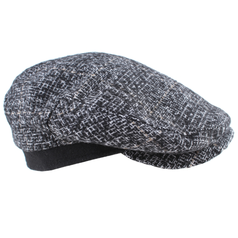 Men's winter cap made of wool blend with hard visor and right melange and quilted lining.