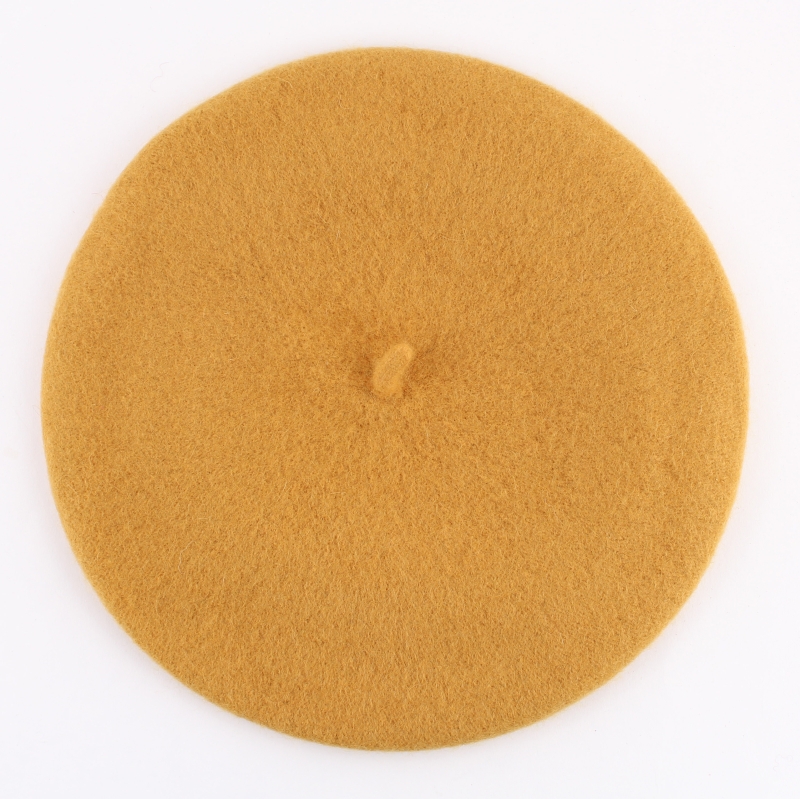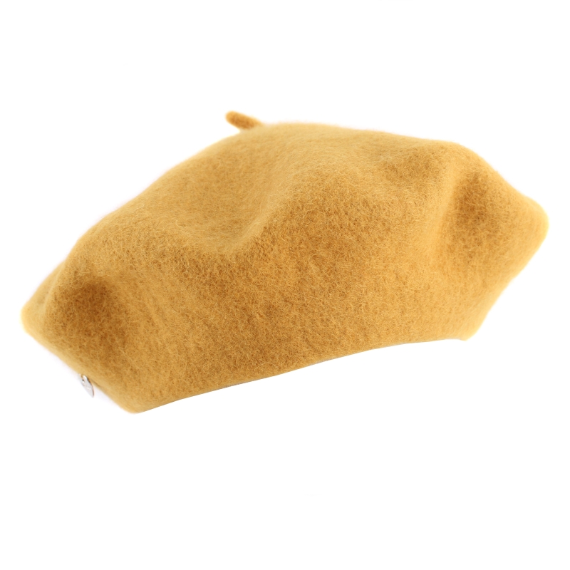 Класическа дамска вълнена барета в цвят горчица.