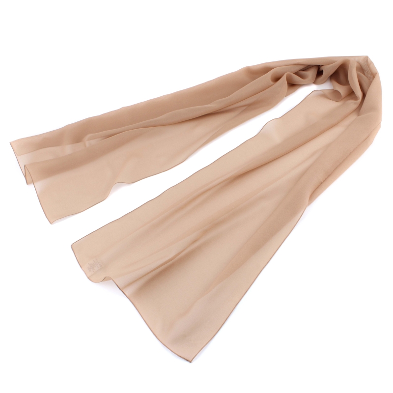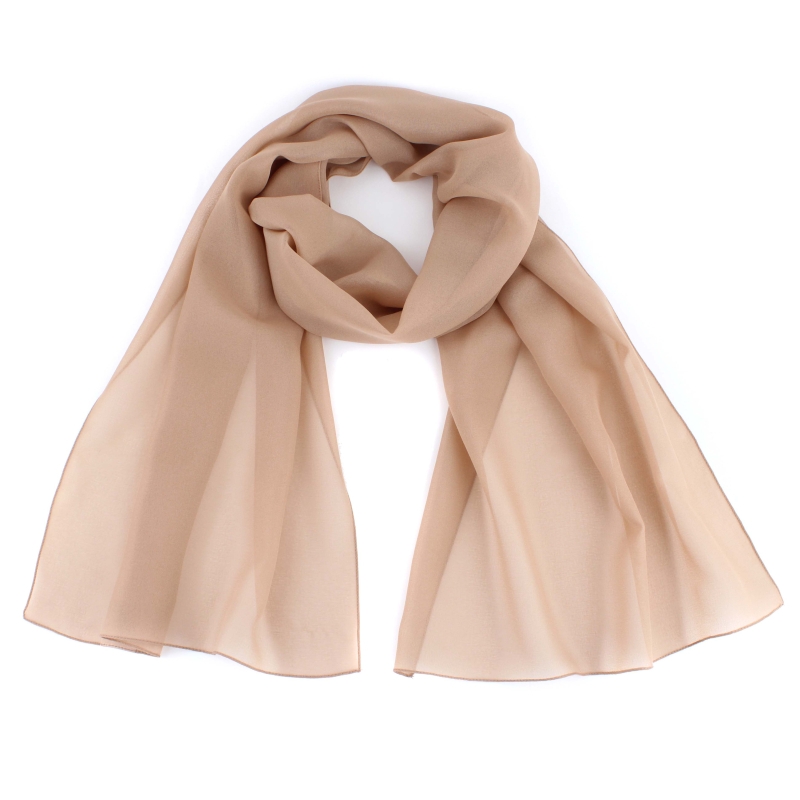 Малък прозиращ дамски шал тип фишу в цвят камила. Стилен и семпъл модел подходящ за ежедневни и официални тоалети.