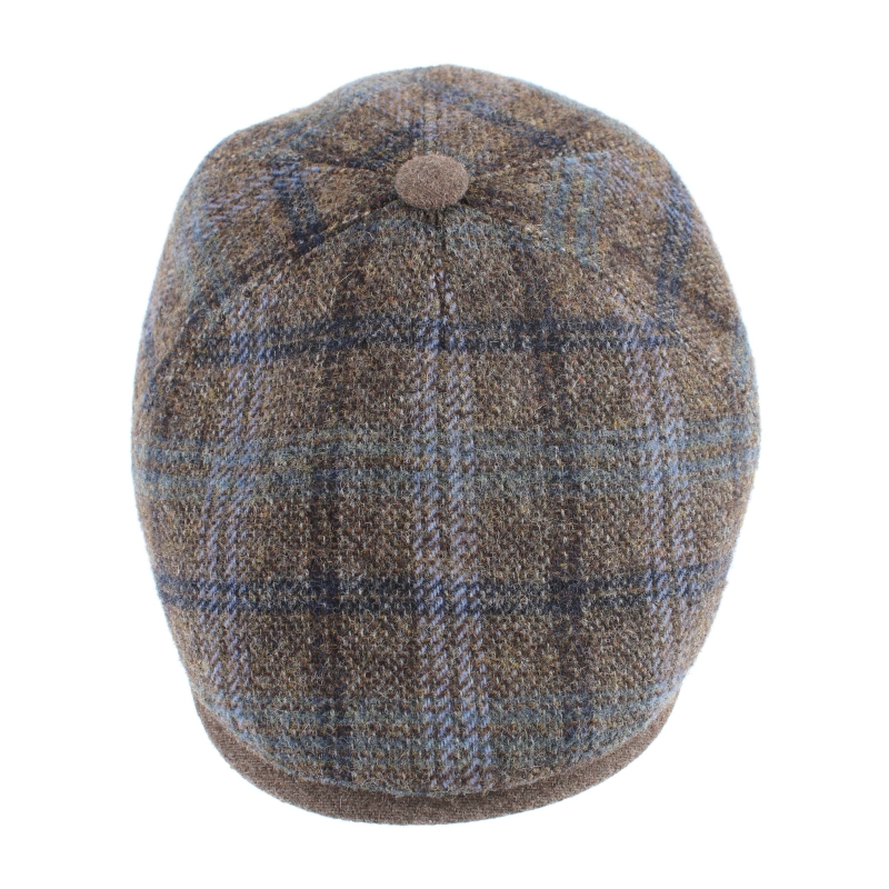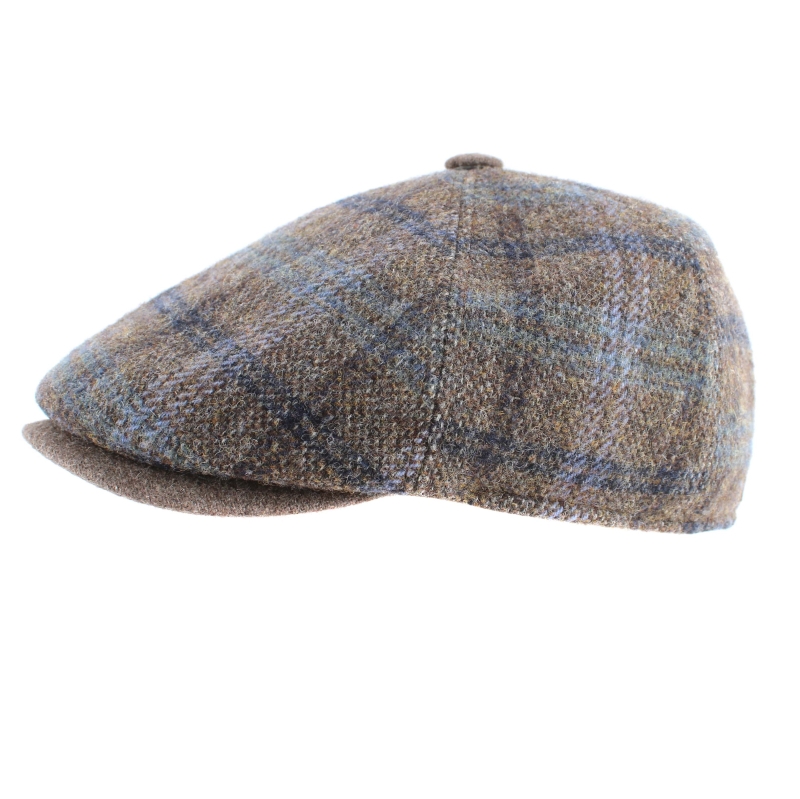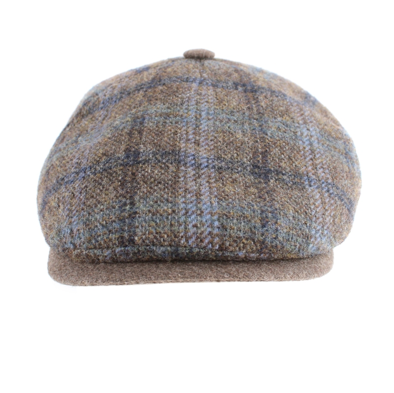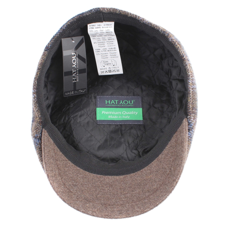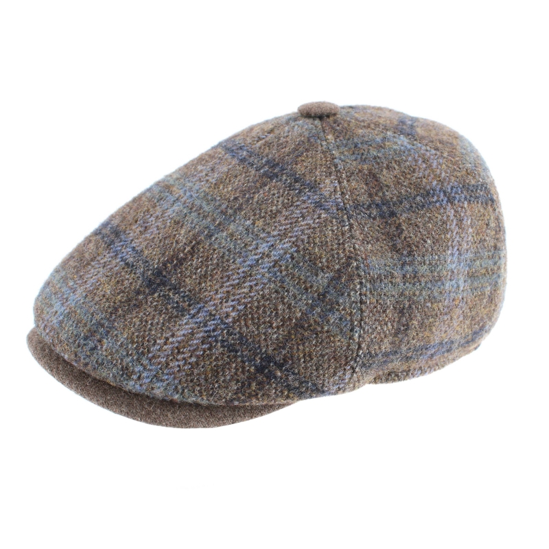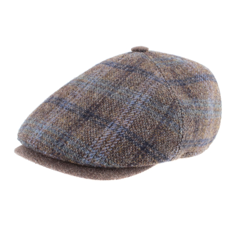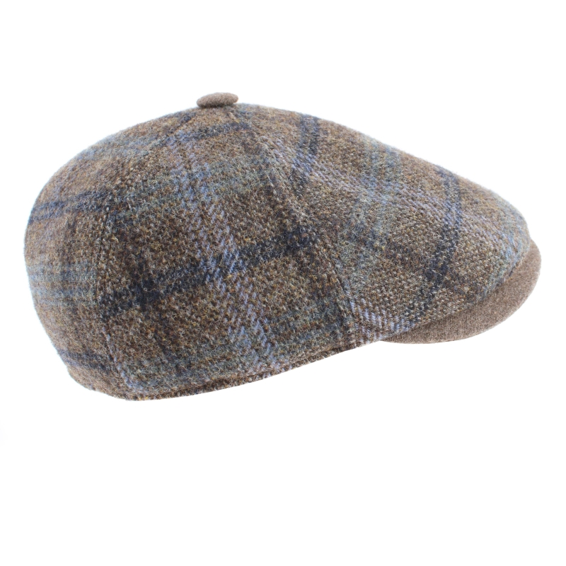 Мъжки вълнен каскет с твърда козирка и купол от пет парчета в каре с бежовокафява основа.