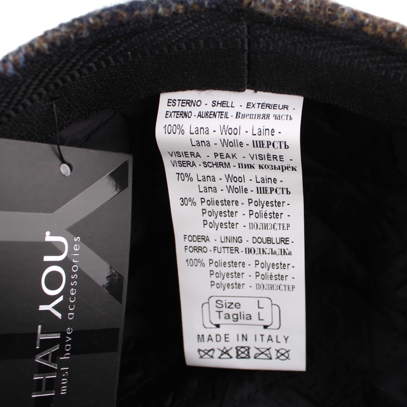 Състав - 100% вълна, плат на козирката - 70% вълна и 30% полиестер, капитонирана подплата от 100% полиестер.