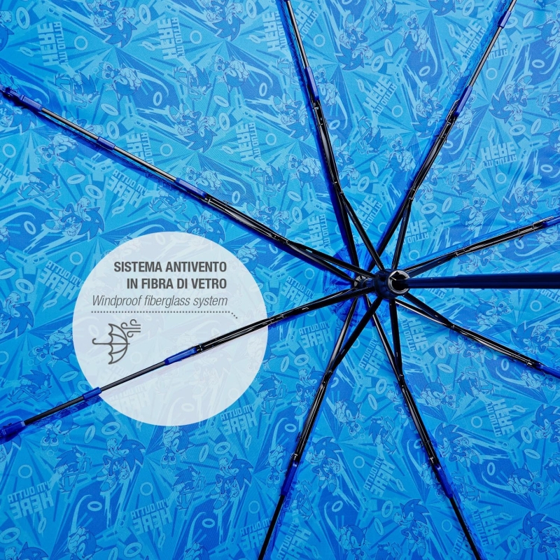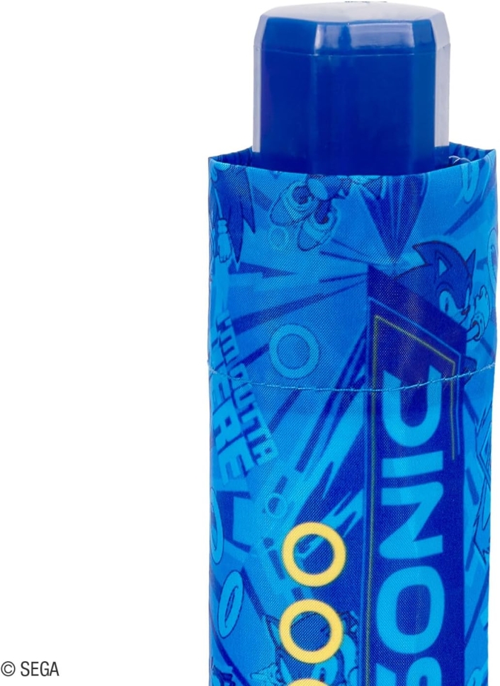 Детски 3-секционен сгъваем неавтоматичен чадър с таралежа Соник от филма "Соник: Филмът" на Парамаунт Пикчърс и едноименнтата видео игра на Sega.