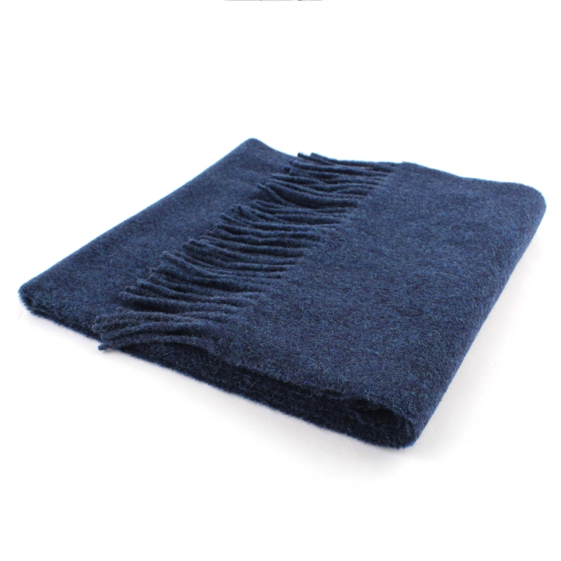 Тесен едноцветен зимен шал от вълна в син меланж.
