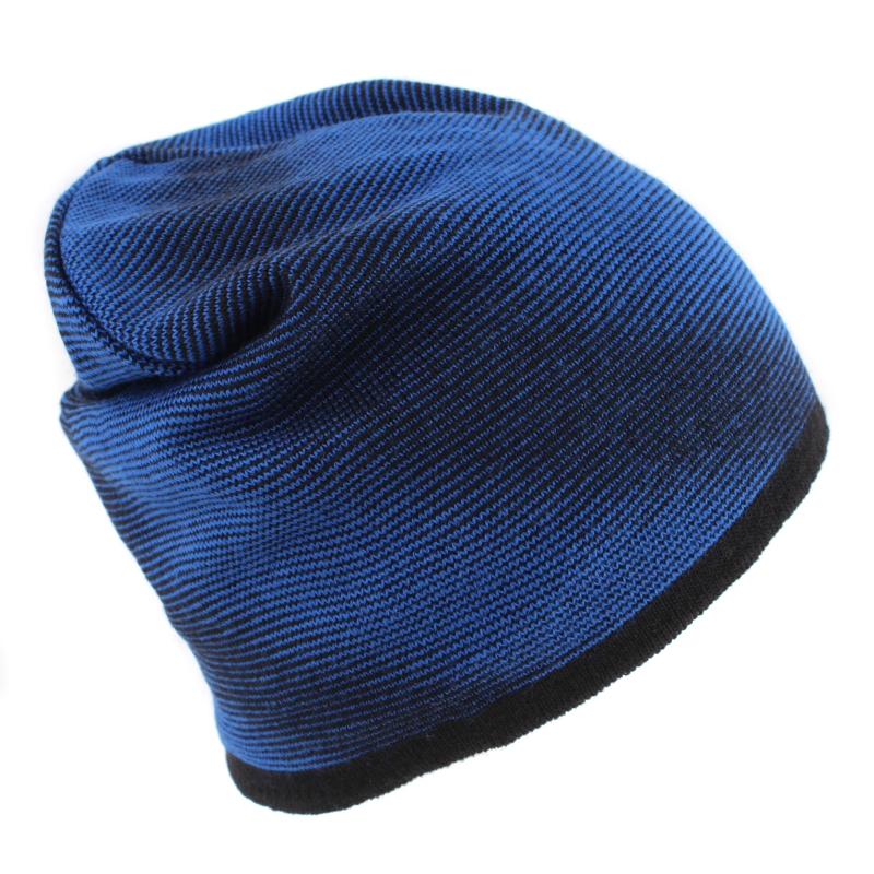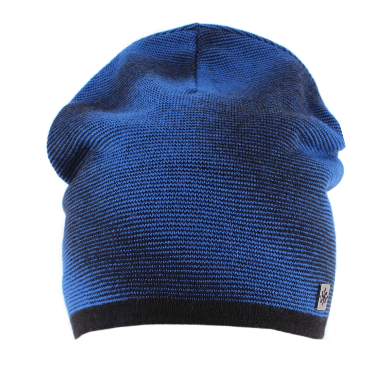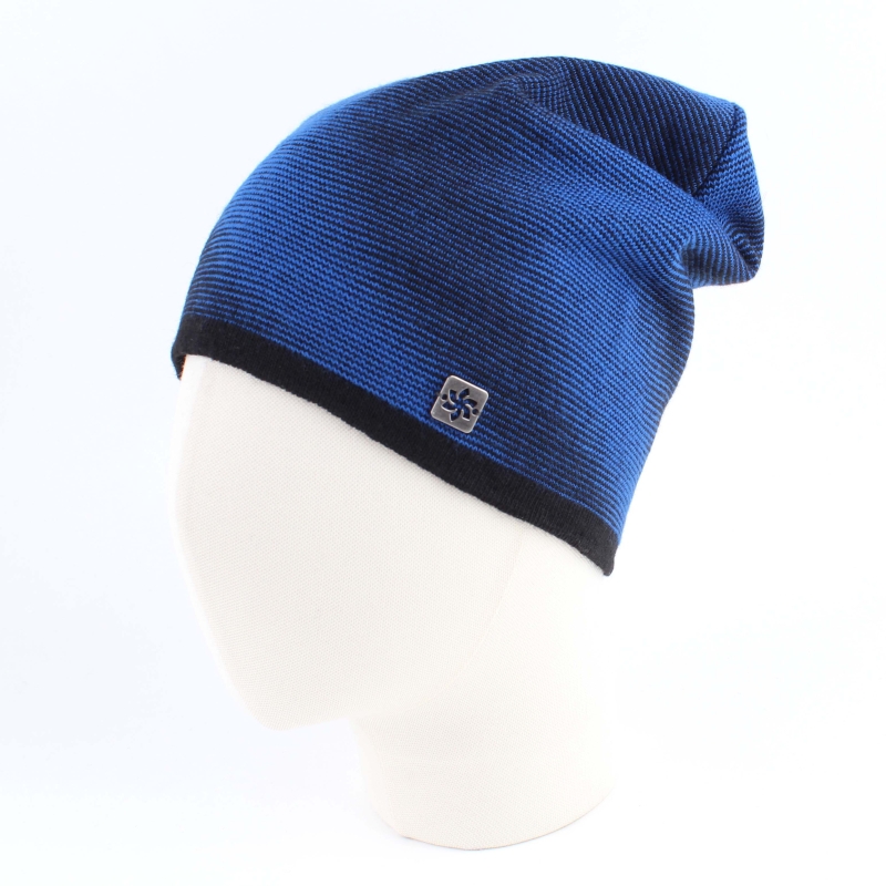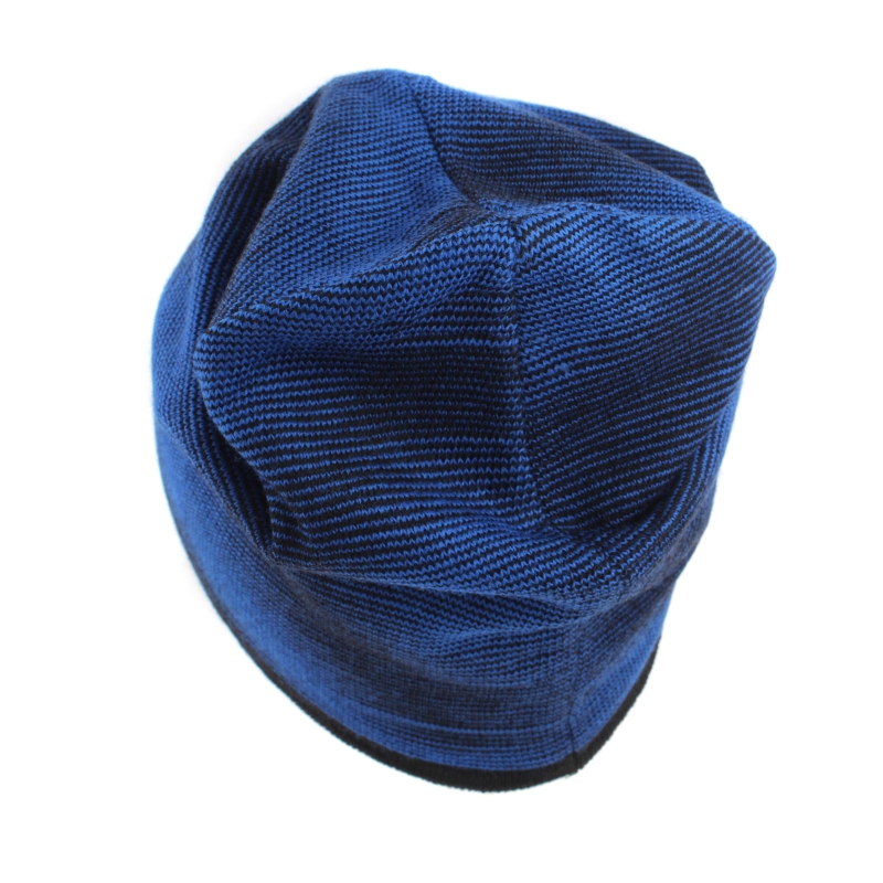 Мъжка плетена шапка с фина плетка в синьо и черно и мека подплата от полар.