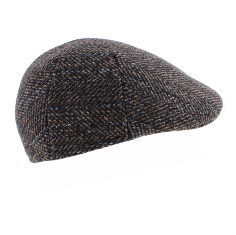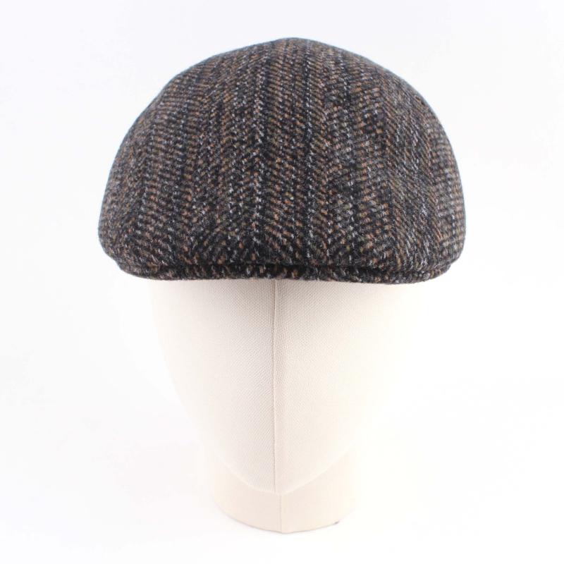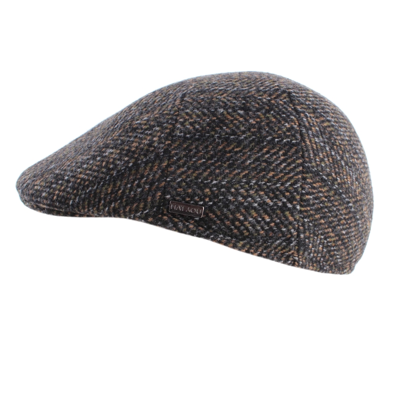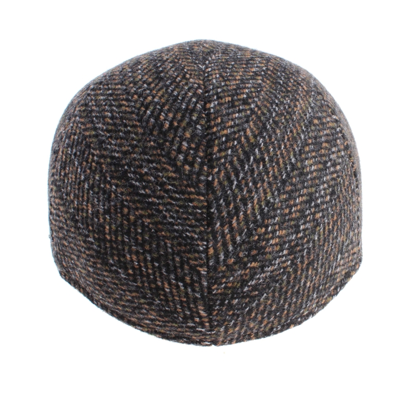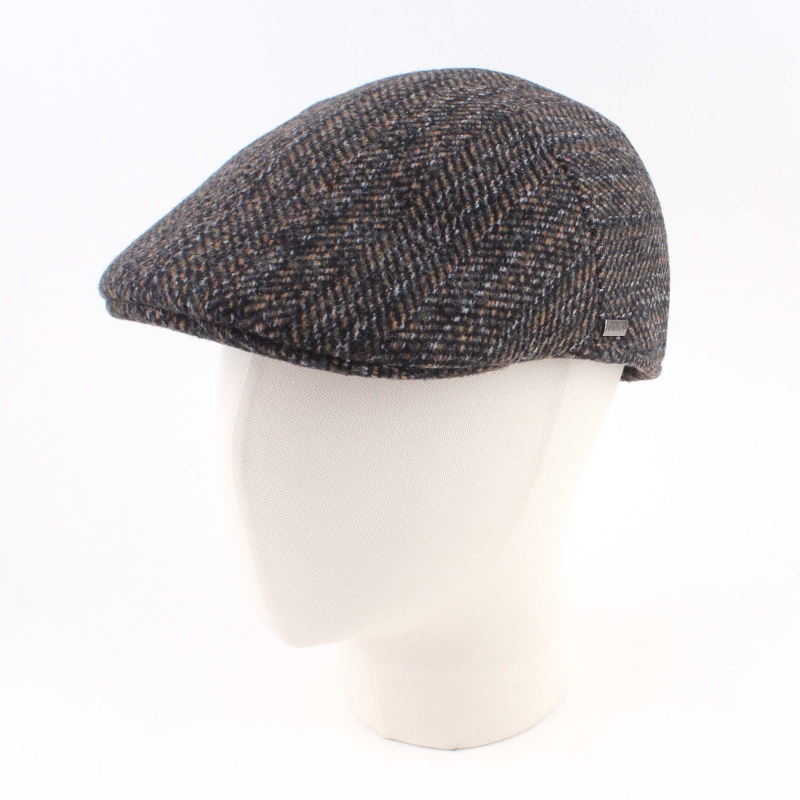 Мъжки зимен каскет от вълнен плат в меланж от черно, кафяво, зелено и сиво.