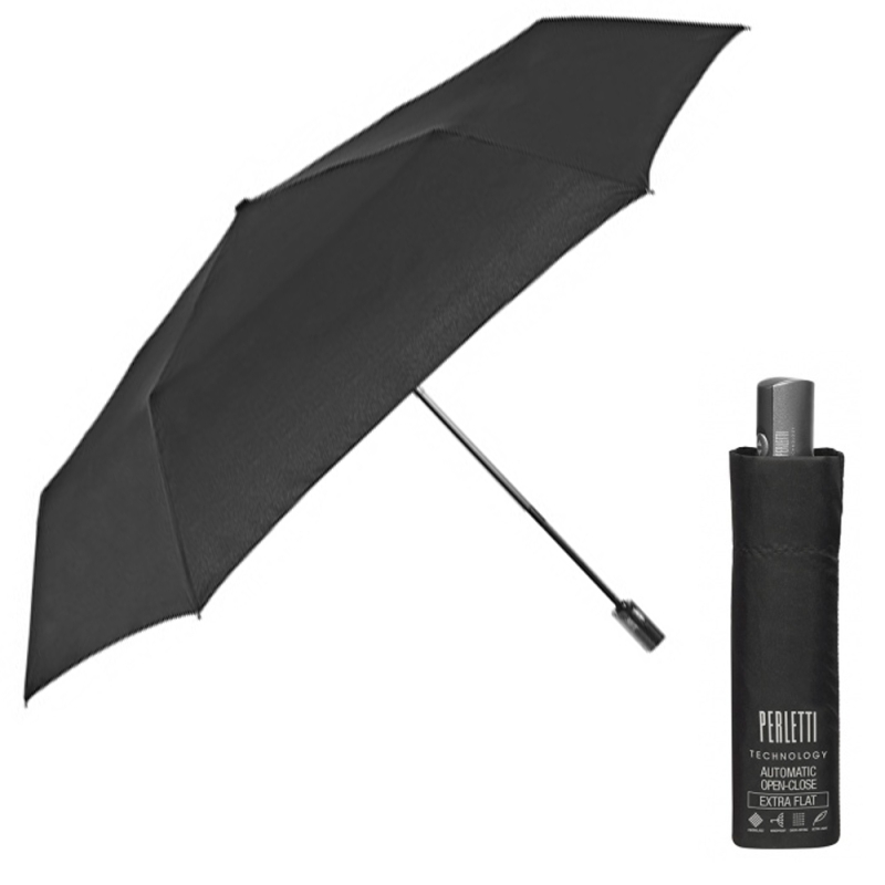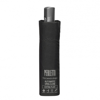 Мъжки плосък чадър от най-високия клас Perletti Technology - минималистичен дизайн, устойчиви материали, удобен за съхранение при пътуване.