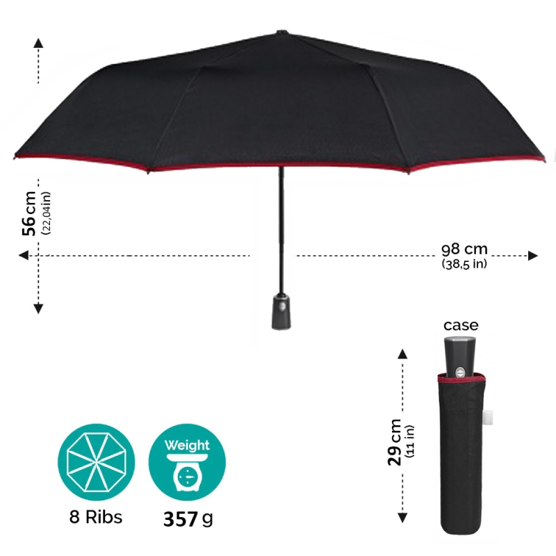 Предимства: Тези чадъри също са малки, сравнително леки и могат да се съберат в обичайния размер чанта или раница. Автоматичните чадъри се отварят с натискане на бутон и се затварят ръчно.