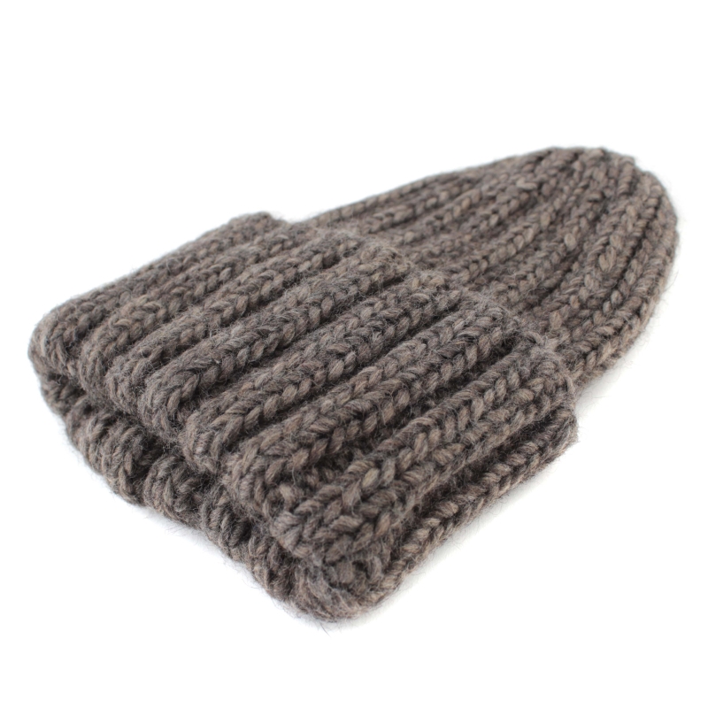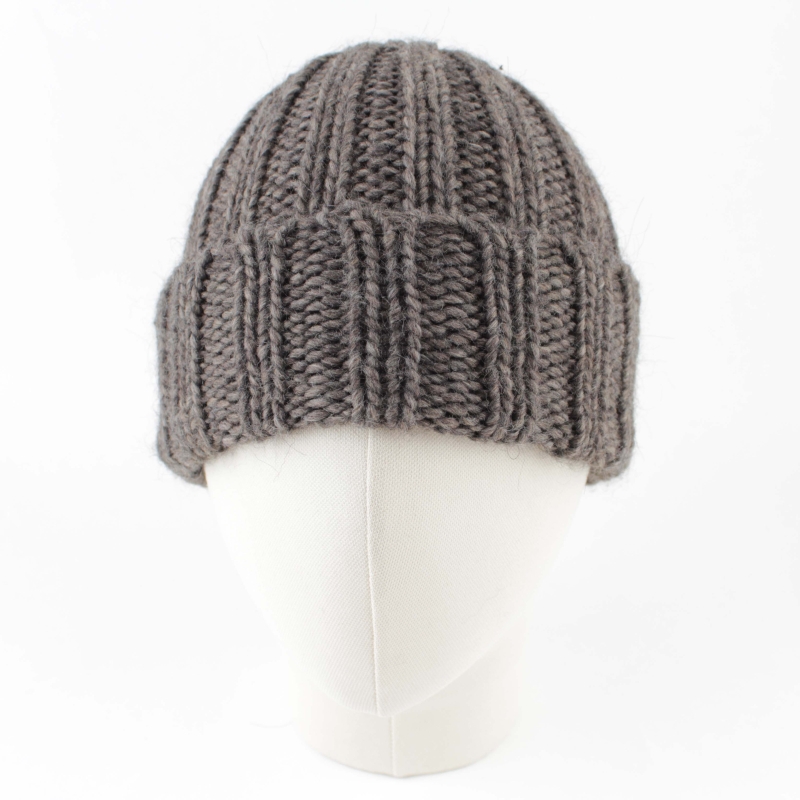 Удобна плетена зимна шапка с едра еластична рипсена плетка и обемна мека прежда.