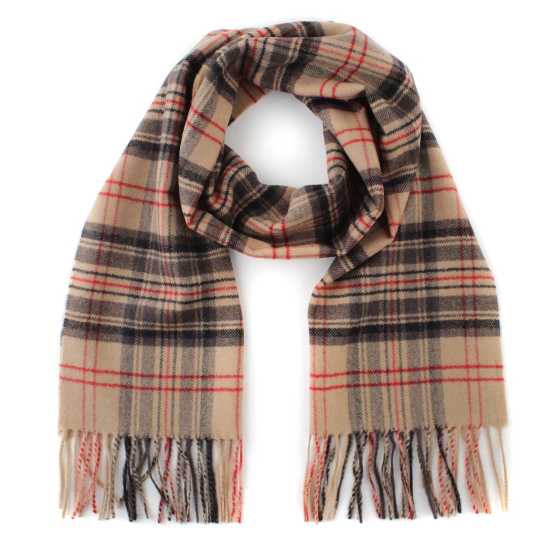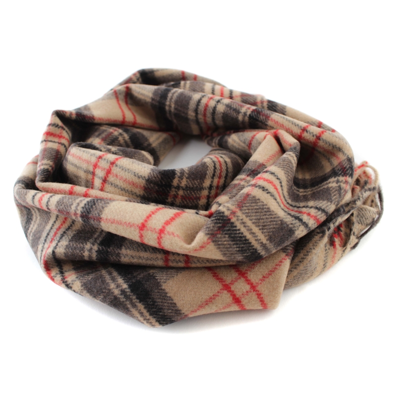 Мек и топъл зимен вълнен шал от фина вълна в бежово каре.