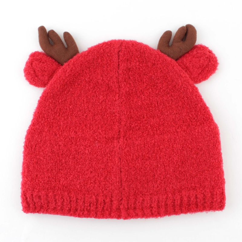 Детска плетена шапка в червено с еленски рогца и частична подплата от полар.