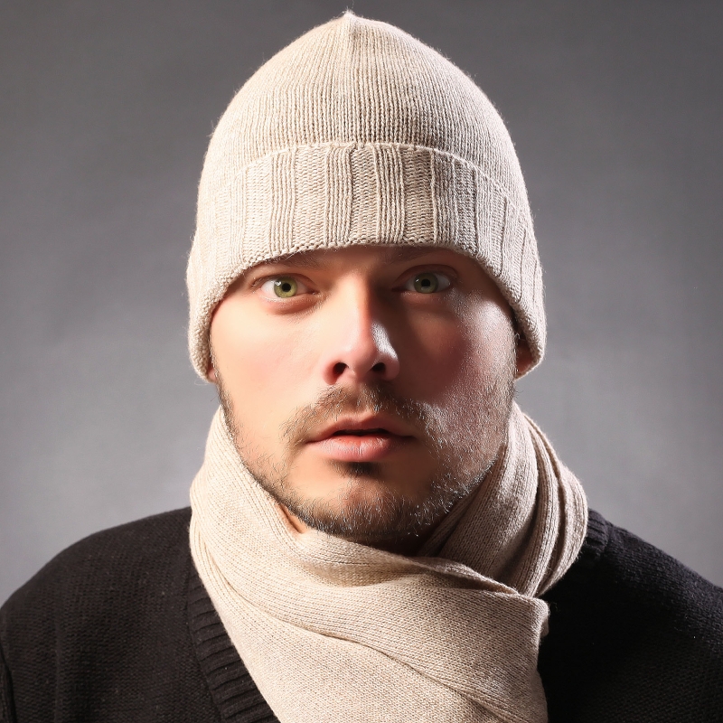 Плетена шапка с кашмир, подходяща за мъже и за жени.