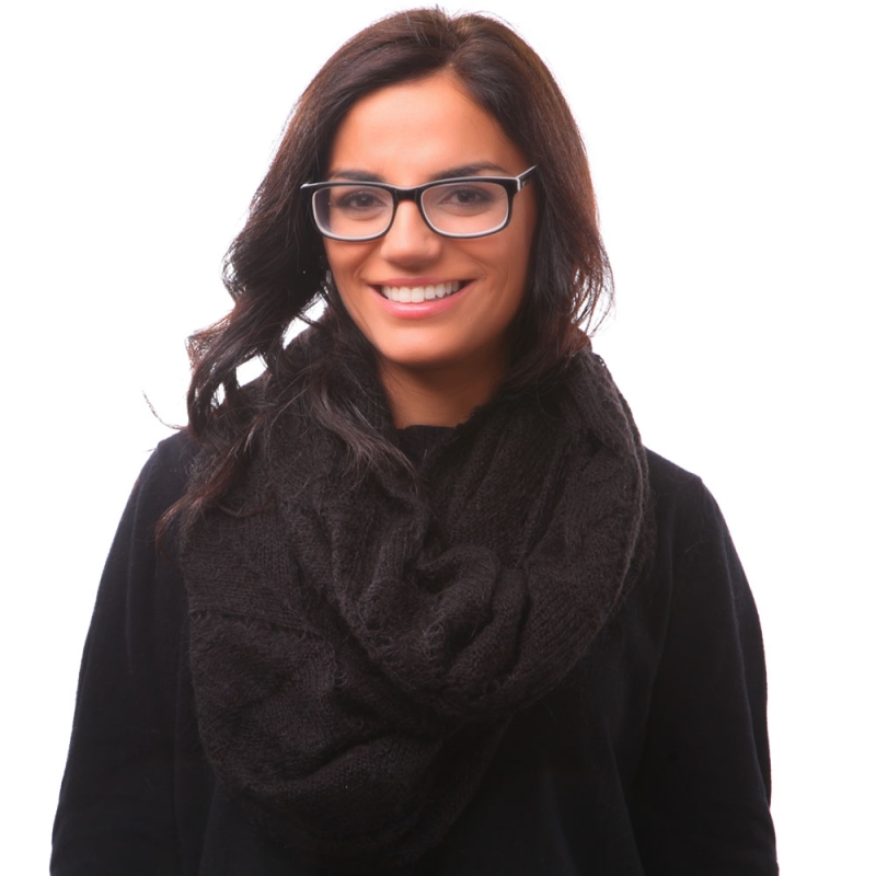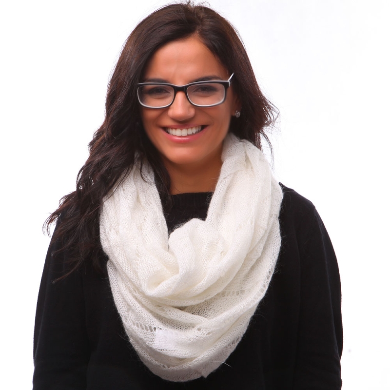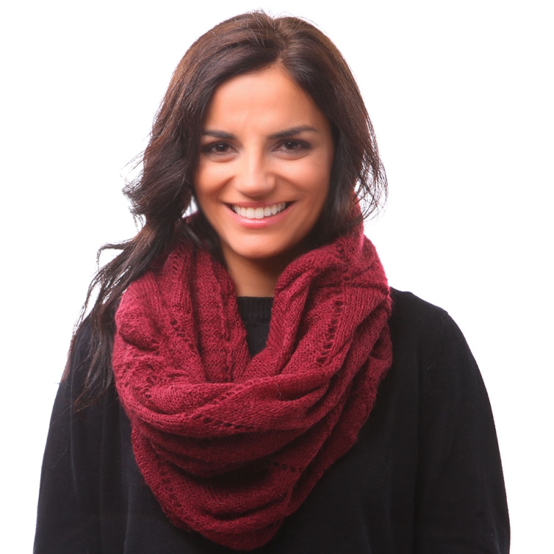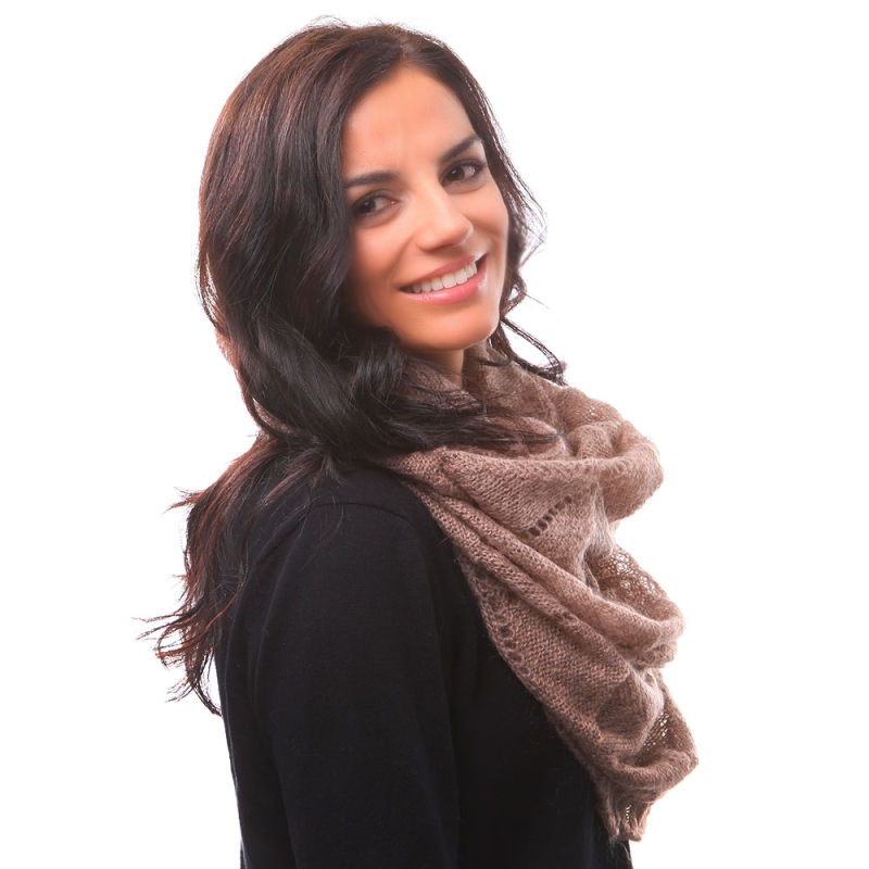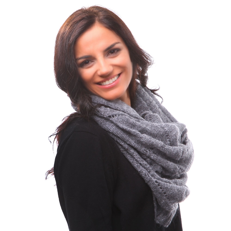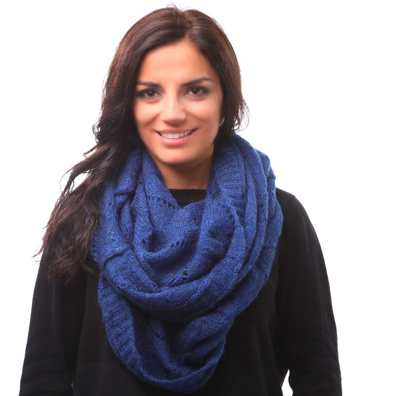 Безкраен плетен шал, изработен от 40% полиакрил, 30% мохер, 30% полиамид.