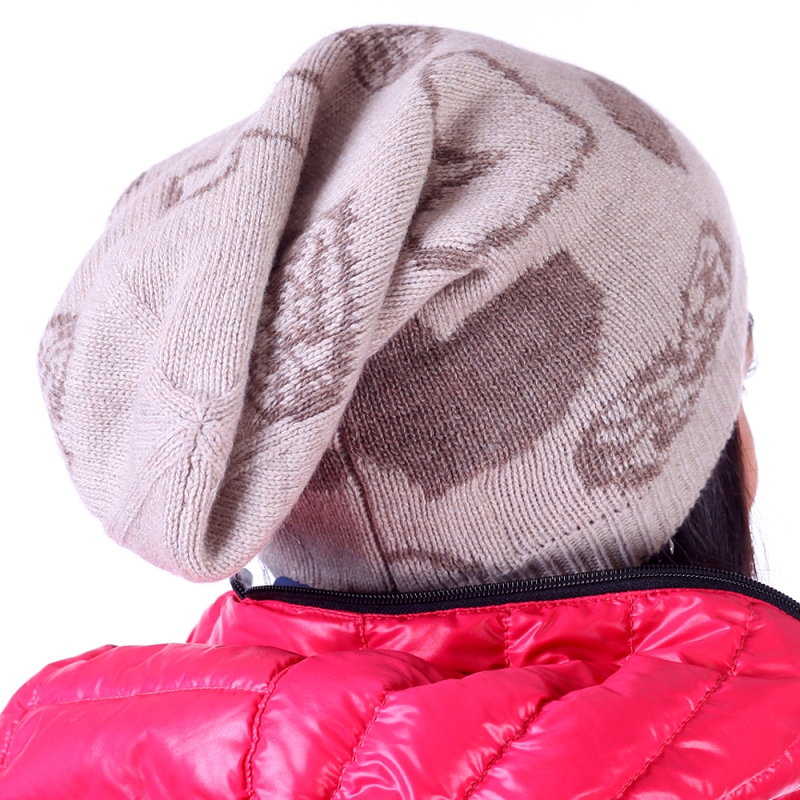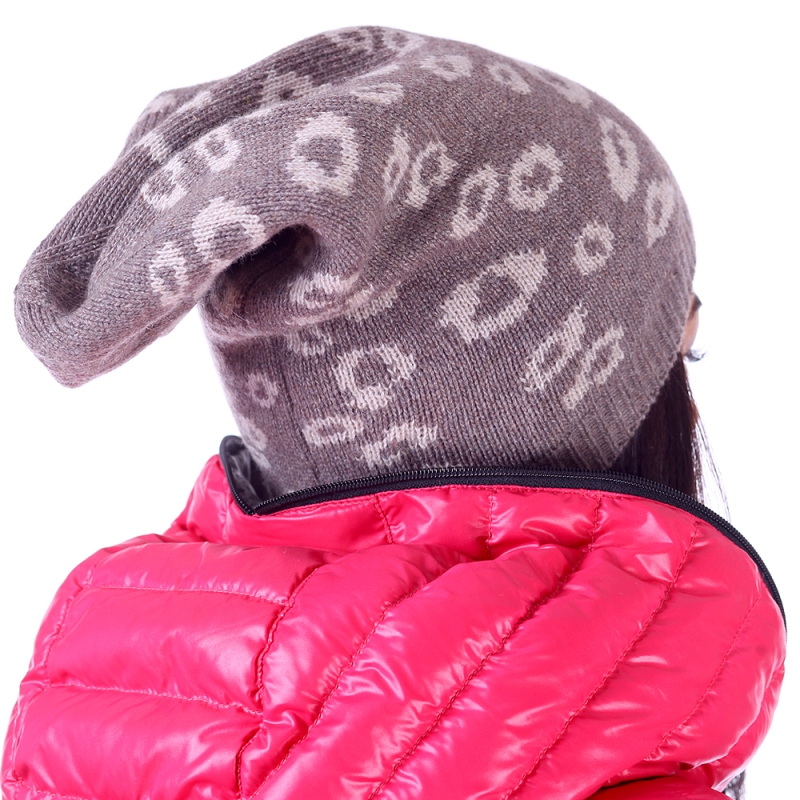 Плетена шапка, изработена от 20% вълна, 10% кашмир, 35% вискоза и 35% полиамид. Произведена в Италия.