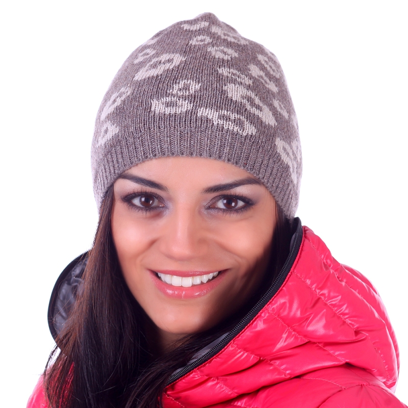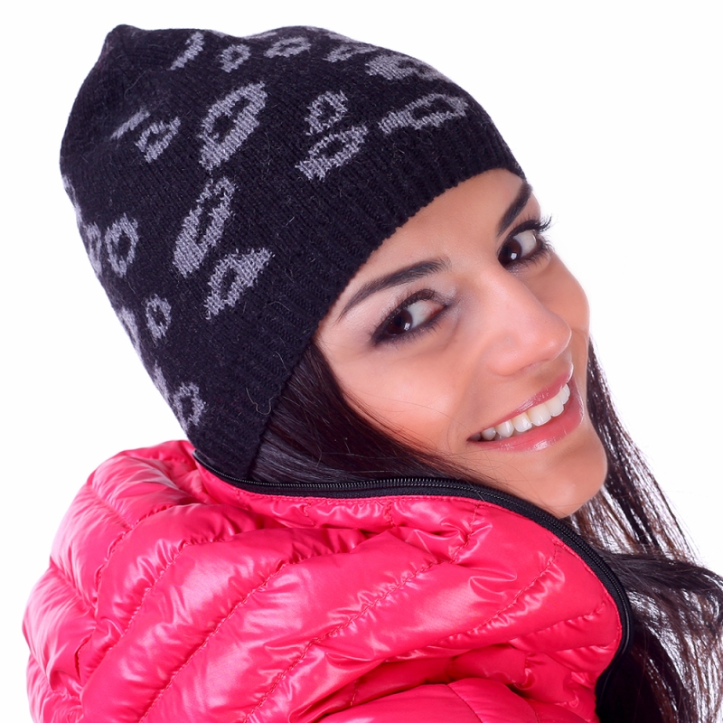 Плетена шапка, изработена от 20% вълна, 10% кашмир, 35% вискоза и 35% полиамид. Произведена в Италия.