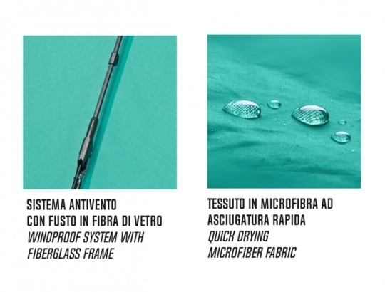 Сгъваем премиум чадър с автоматично отваряне и затваряне. Гъвкава и лека ветроустойчива структура от фибросъкло. Плат от бързосъхнеща хидроотблъскваща PFCFREE микрофибърна материя, 8 сегмента. Удобна гумирана дръжка.