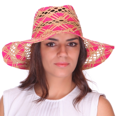 Pălărie cu boruri largi pentru femei Raffaello Bettini RB 22/21226, Natural/ciclamen