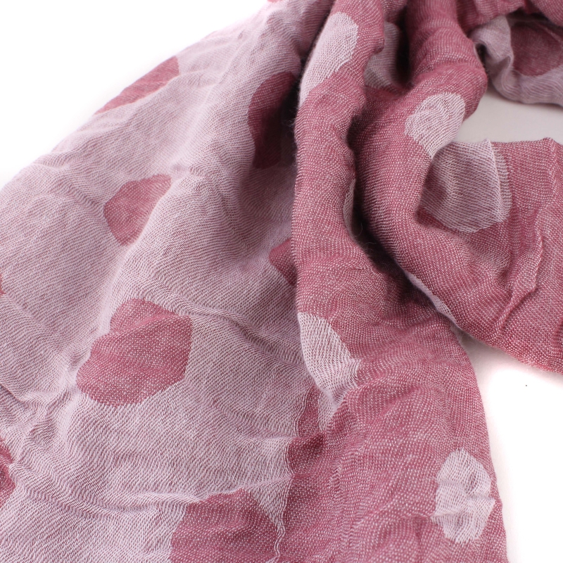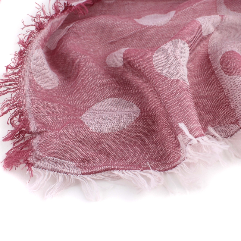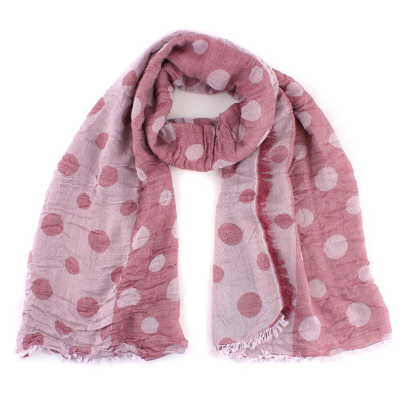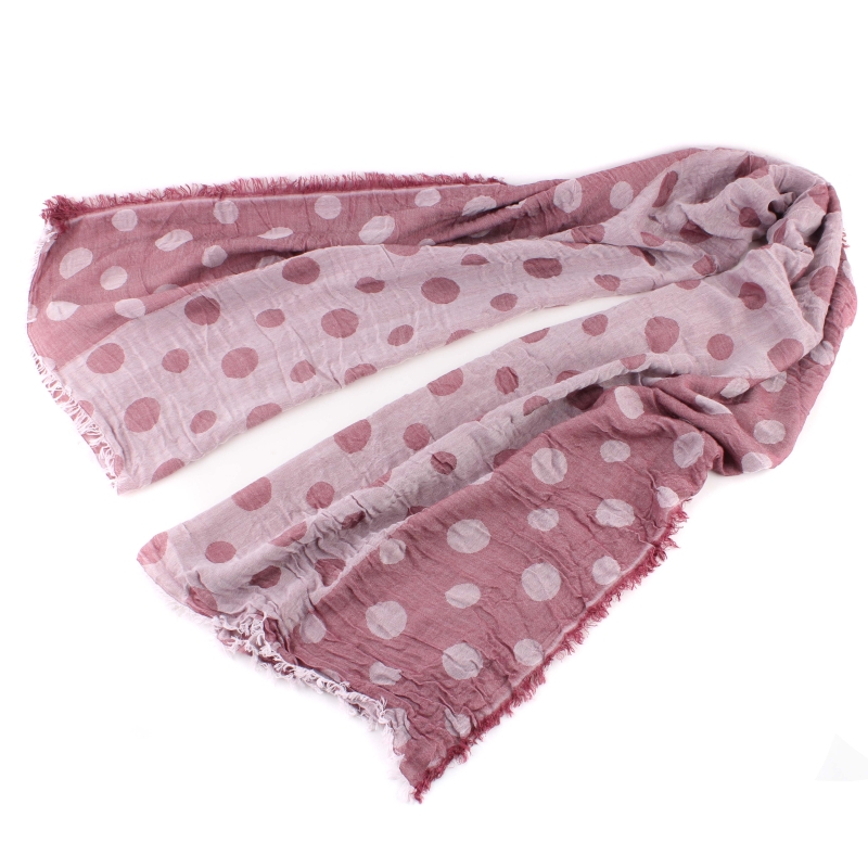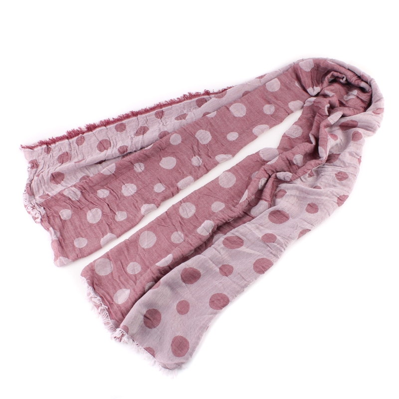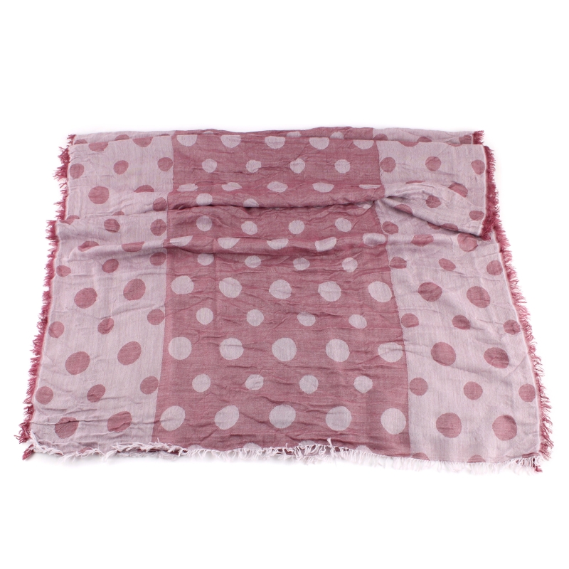 Eșarfă moale din crepon cu capete nefinisate în roz pastel cu buline.