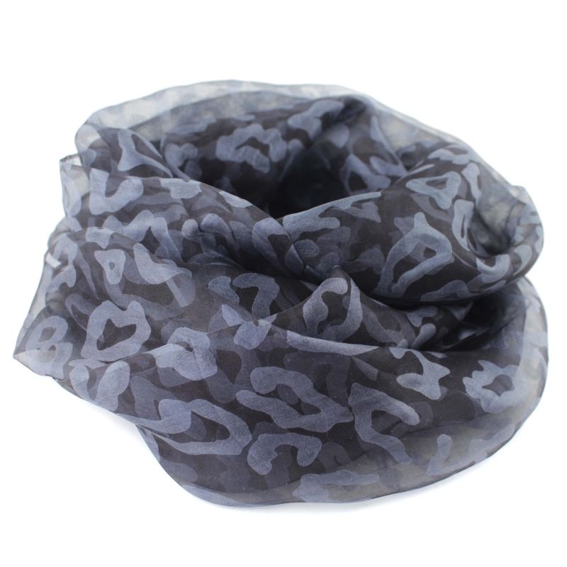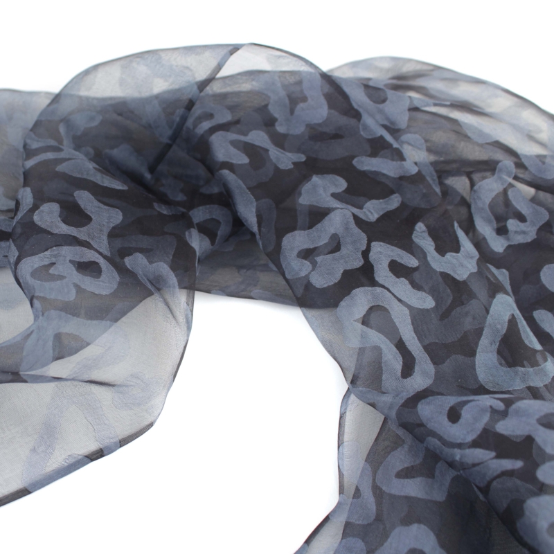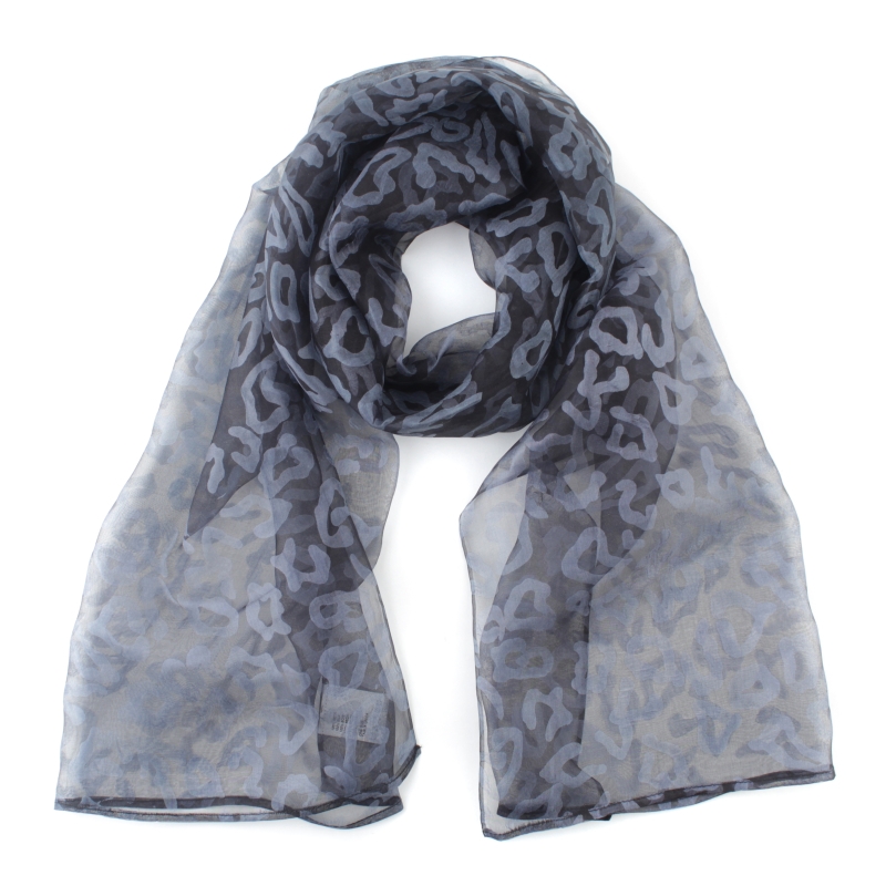 Eșarfă de damă din mătase, foarte fină și ușoară, transparentă, în culoarea gri.