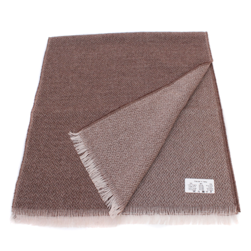 Eșarfa moale și elegantă pentru bărbați, cu „os de pește” fin. Eșarfa este confecționată dintr-un amestec frumos de lână, modal și poliamidă. Prezența unei modale în compoziție înmoaie și mai mult țesătura, în timp ce poliamida adaugă stabilitate și rezistență. Compoziție: 52% lână, 35% modală și 13% poliamidă. Dimensiuni: 38x180 cm.