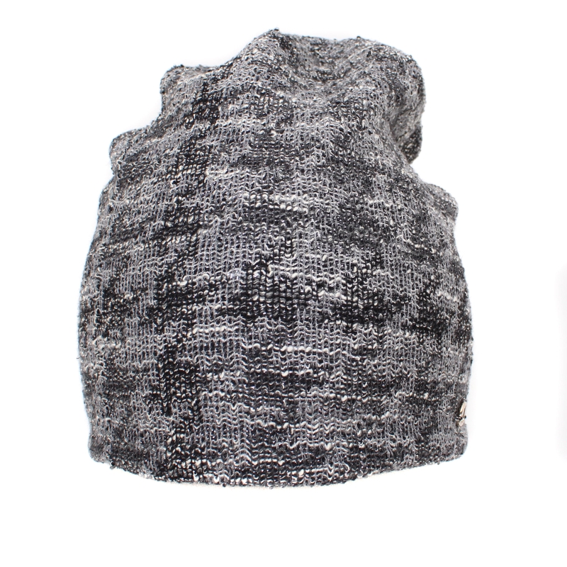 Palarie din tricot pentru femei cu fire argintii. Compoziție: 26% bumbac, 12% lână, 39% viscoză, 3% poliamidă și 2% elastan. Căptușeală - 98% poliacrilic și 2% elastan. Fabricat în Italia.