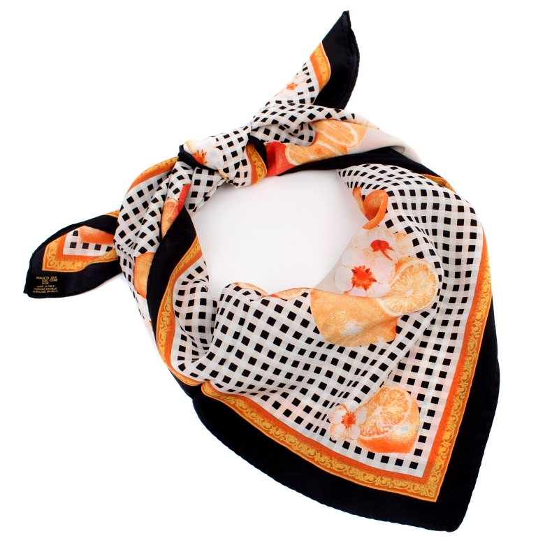 Eșarfă pătrată de damă din satin de mătase cu margini elegant răsucite manual.